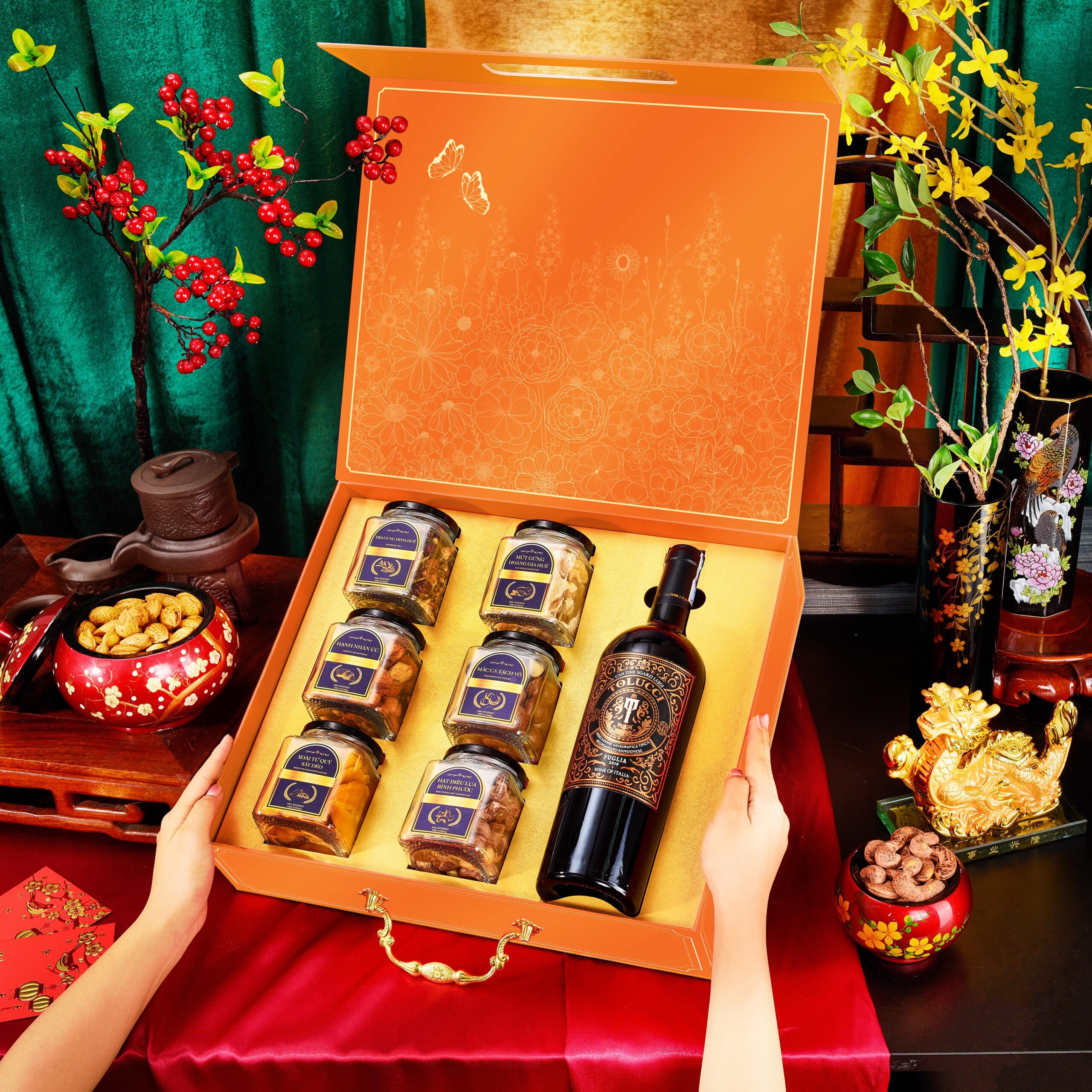 Các thành phần trong giỏ quà Tết